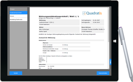 Nachdem die entsprechenden Personen auf dem Tablet unterschrieben haben, erstellt die DWA eine rechtssichere PDF-Datei.
