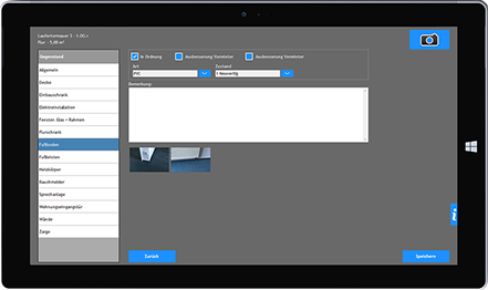 Die Arbeitsweise bei der digitalen Aufnahme ähnelt sehr der Papiervariante, es stehen Ihnen allerdings nützliche Extras zur Verfügung, wie z.B. das Erstellen von Fotos, die Aufnahme der Schlüsselanzahl und Zählerstände.